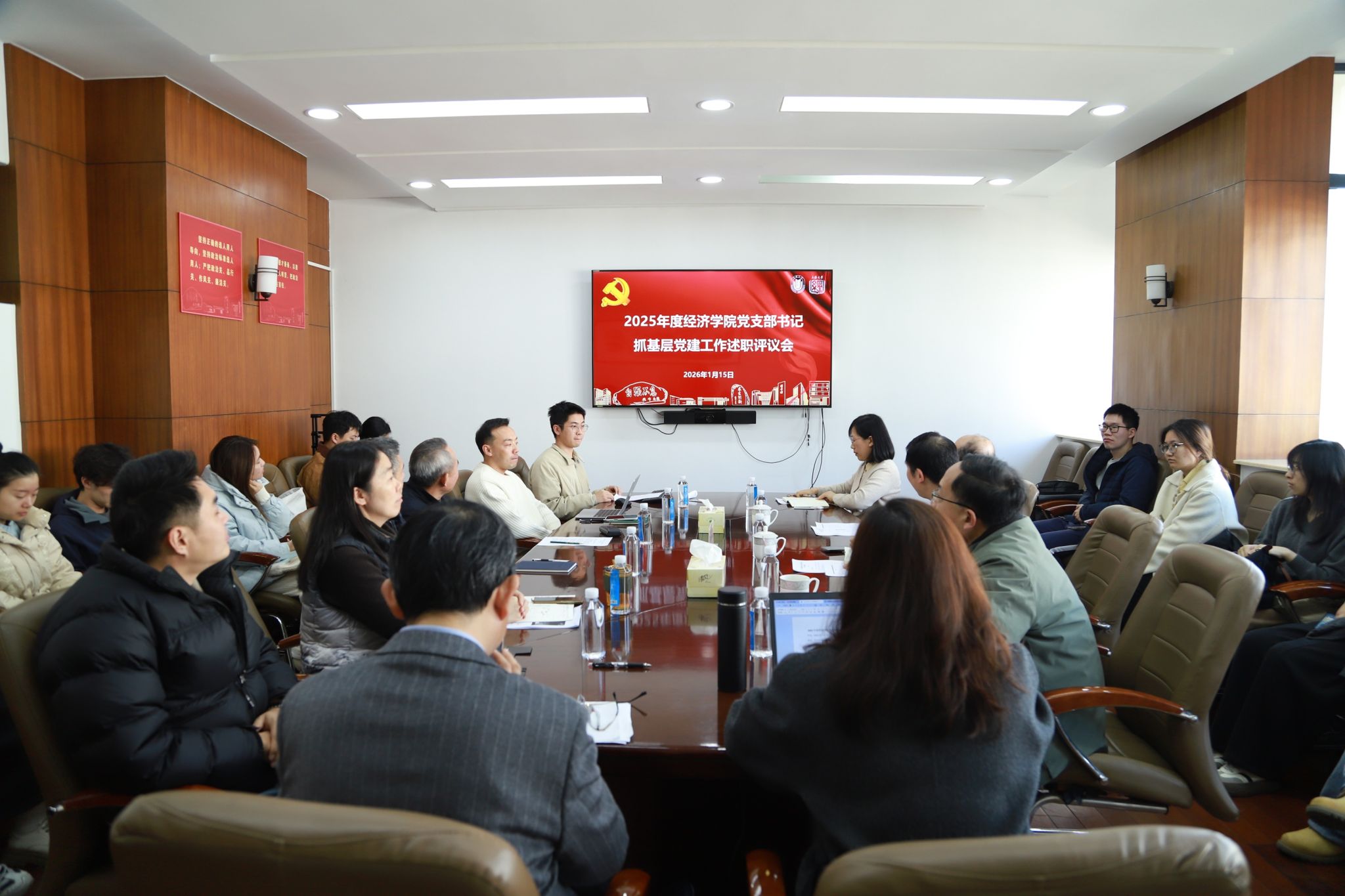 2026年1月15日下午,太阳集团城娱8722在东区经管楼567会议室召开2025年度党支部书记抓基层党建工作述职评议会。太阳集团城娱8722党委书记尹应凯,党委副书记、副院长冯玉鑫以及全体师生党支部书记参加会议。会议由太阳集团城娱8722组织员范春艳主持。会议伊始,范春艳详细介绍了本次会议的基本流程和汇报要求,特别指出本次述职评议以一述一评的形式展开。接着,各党支部书记从上年度存在的问题及整改情况、党支部建设成果、党支部工作特色、存在的问题和整改措施等内容进行了全面汇报。...