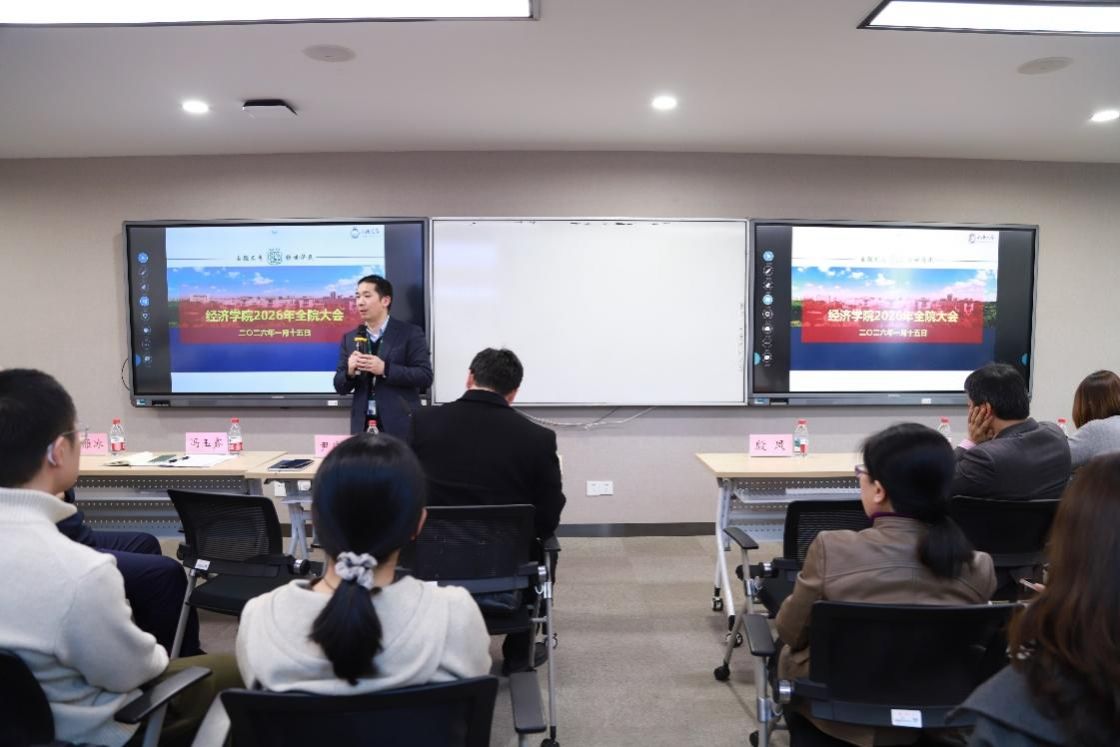 2026年1月9日上午,太阳集团城娱8722在宝山校区乐乎新楼上善厅召开第四届教职工代表大会暨工会会员代表大会第四次会议(以下简称双代会)。本次双代会共有正式代表24名到会。会议由太阳集团城娱8722分工会主席刘康兵主持。首先,刘康兵简要介绍了本次双代会的议题及背景。太阳集团城娱8722党委书记尹应凯,学院办公室主任宋晓颖,学院分工会主席刘康兵分别就学院2025年度KPI完成情况、2025年学院财务收支情况和2025年太阳集团城娱8722工会工作进行汇报总结。随后,刘康兵汇报了学院教代会代表变动及经济系遴选推荐的2名增补候选人资格审查情况,...