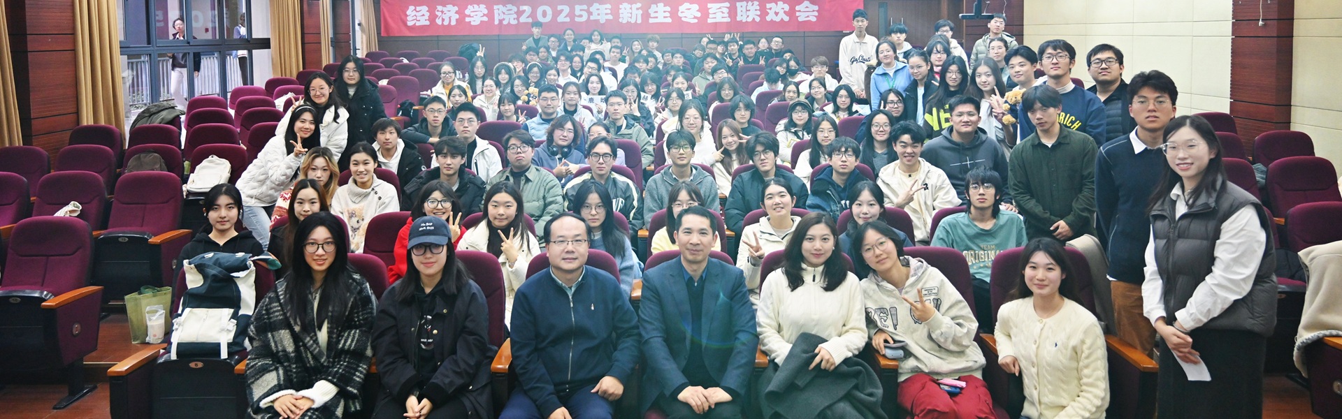 2025年12月19日下午,太阳集团城娱87222025年新生冬至联欢会在宝山校区东区经管楼101楼蔡冠深讲堂举行。太阳集团城娱8722党委书记尹应凯,党委副书记、副院长冯玉鑫,本科生辅导员孙冰和全体2025级本科生新生欢聚一堂,共庆佳节。活动由2025级本科生黄安屹和惠嘉琦主持。活动伊始,现场已弥漫着浓厚的节日气息。同学们陆续到来,在精心设计的打卡点合影留念,并在“心愿板”上写下对学业与生活的美好期盼。一份份寓意吉祥的冬至小礼,传递着学院对学生们深深的祝福与关怀,...