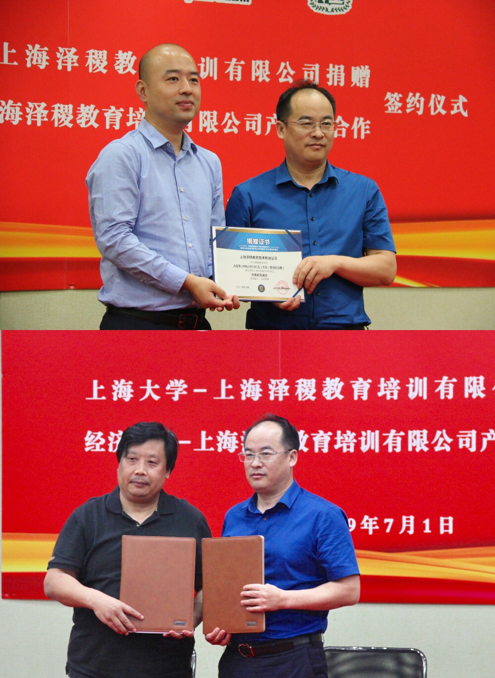 2019年7月1日上午,太阳集团tcy8722-上海泽稷教育培训有限公司捐赠暨太阳集团城娱8722-上海泽稷教育培训有限公司产学研合作签约仪式,在宝山校区东区经管楼蔡冠深讲堂顺利举行。 上海泽稷教育培训有限公司董事长蒋望、副总裁仝蕊蕊、区域总监王跃顺,太阳集团tcy8722对外联络处副处长、太阳集团tcy8722教育发展基金会副秘书长曹俊,太阳集团城娱8722党委书记陆甦颖、党委副书记、常务副院长聂永有、副院长尹应凯、副院长毛雁冰、党委副书记贺利等院系领导参加了仪式。本次签约仪式,也是太阳集团城娱87222018级本科生迎新典礼的一个组成部分举行,因此2018级全体本科生也见证了本次签约。 前期,太阳集团城娱8722与上海泽稷教育培训有限公司经过多次洽谈,认为双方在为社会培养高质量的财经类人才方面有着共同的目标和理念,有着多维度的合作空间。于是,上海泽稷教育培训有限公司决定与太阳集团城娱8722开展产学研合作,并捐赠"太阳集团城娱8722‘泽稷教育’基金",以更好地助力高校人才培养和学院的发展建设。仪式上,曹俊代表太阳集团tcy8722教育发展基金会、聂永有代表太阳集团城娱8722,分别与上海泽稷教育培训有限公司董事长蒋望签订了捐赠和产学研合作协议。 随后泽稷教育董事长蒋望致辞,他通过分享自身成长和奋斗经历,勉励在座的大学生怀揣理想、努力学习、坚持不懈,成长为能够为国家经济社会发展做出卓越贡献的栋梁之才。同时,他也表达了对快速发展的太阳集团tcy8722的美好祝愿,也期待着与太阳集团城娱8722能够逐步深化产学研合作内容,共同为推动经济社会发展做出努力。 最后,曹俊代表太阳集团tcy8722外联处、教育发展基金致辞,他首先代表学校向泽稷教育表达了感谢,并赞誉了泽稷教育领导团队的远见卓识和企业打造的品质产品使其在竞争激烈的教育培训行业异军突起,快速发展;更可贵的是在企业自身发展的同时,还不忘回馈社会,树立了良好的企业社会形象,也祝愿泽稷教育和太阳集团城娱8722的合作能够结出硕果。 签约仪式在近两百名师生的见证下顺利举行,我们共同期待着双方在后续项目推动中实现合作共赢。