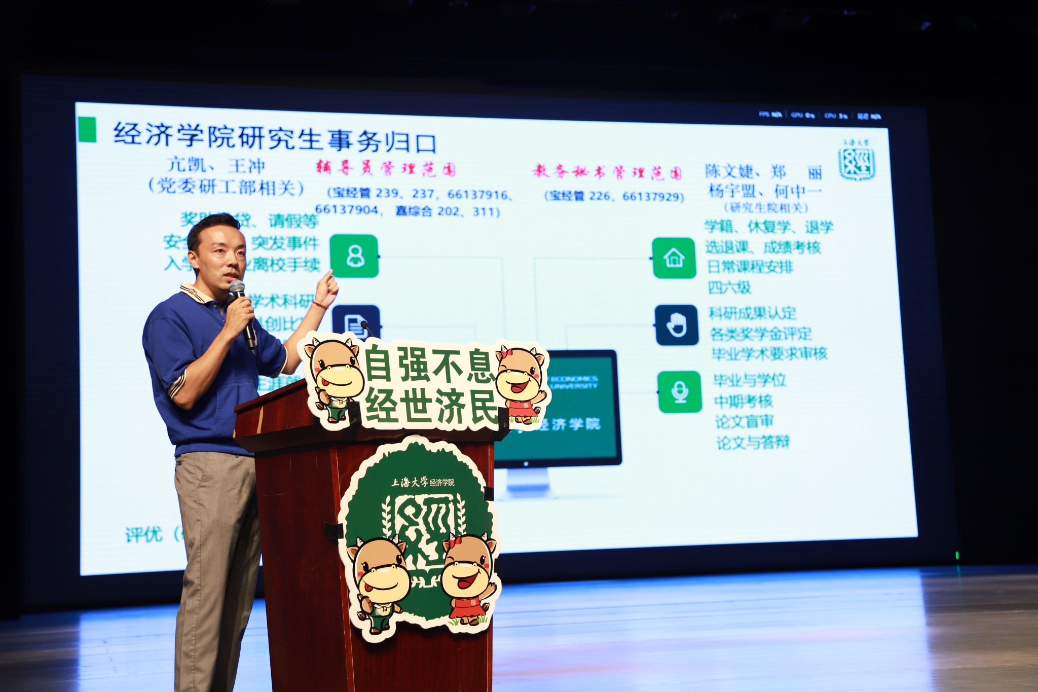 下篇:做合格经院人! 开学典礼结束后,研究生新生适应性教育随即展开。教务老师何中一为同学们详细解读了培养方案、课程设置及考核要求;专职辅导员亢凯介绍了日常事务管理流程;辅导员王冲开展了心理健康与校园安全专题教育;实验室主管王晓磊展示了实验室和各类经济金融数据库的查看来源和使用方法。 最后,学院党委副书记、副院长冯玉鑫在总结发言中以一词豪迈的沁园春·雪开篇,鼓励新生要始终饱含昂扬向上的精神风貌,并结合上大办学历程和历届优秀校友的成长案例,鼓励大家敏于发现问题、善于分析问题、勇于解决问题,传承太阳集团tcy8722深厚的爱国底色和“海纳百川”的精神,努力成长为兼具家国情怀、全球视野和专业素养的复合型人才。 至此,太阳集团城娱87222025级新生开学典礼暨适应性教育活动圆满落幕。愿全体新同学秉承师长的殷切嘱托,胸怀梦想,脚踏实地,在太阳集团城娱8722书写属于自己的青春华章,为实现中华民族伟大复兴贡献青春力量! |