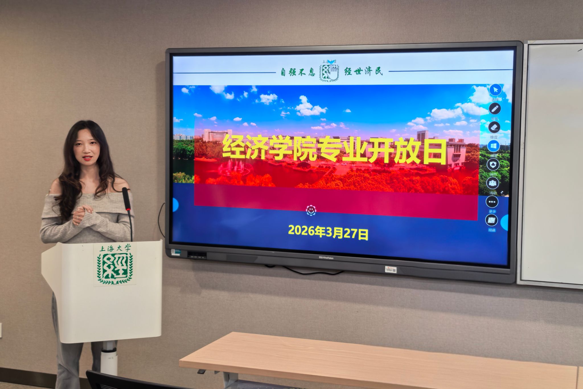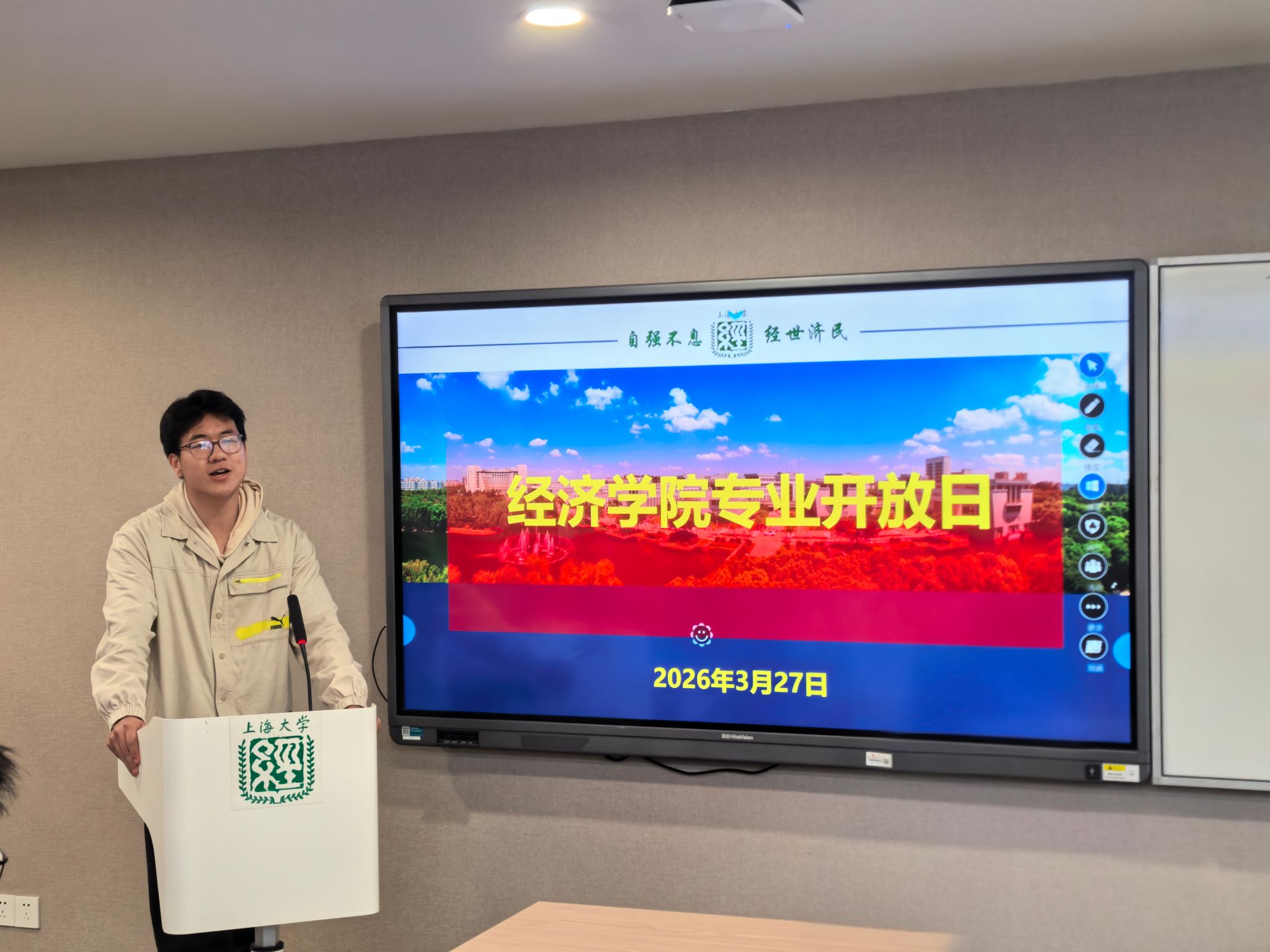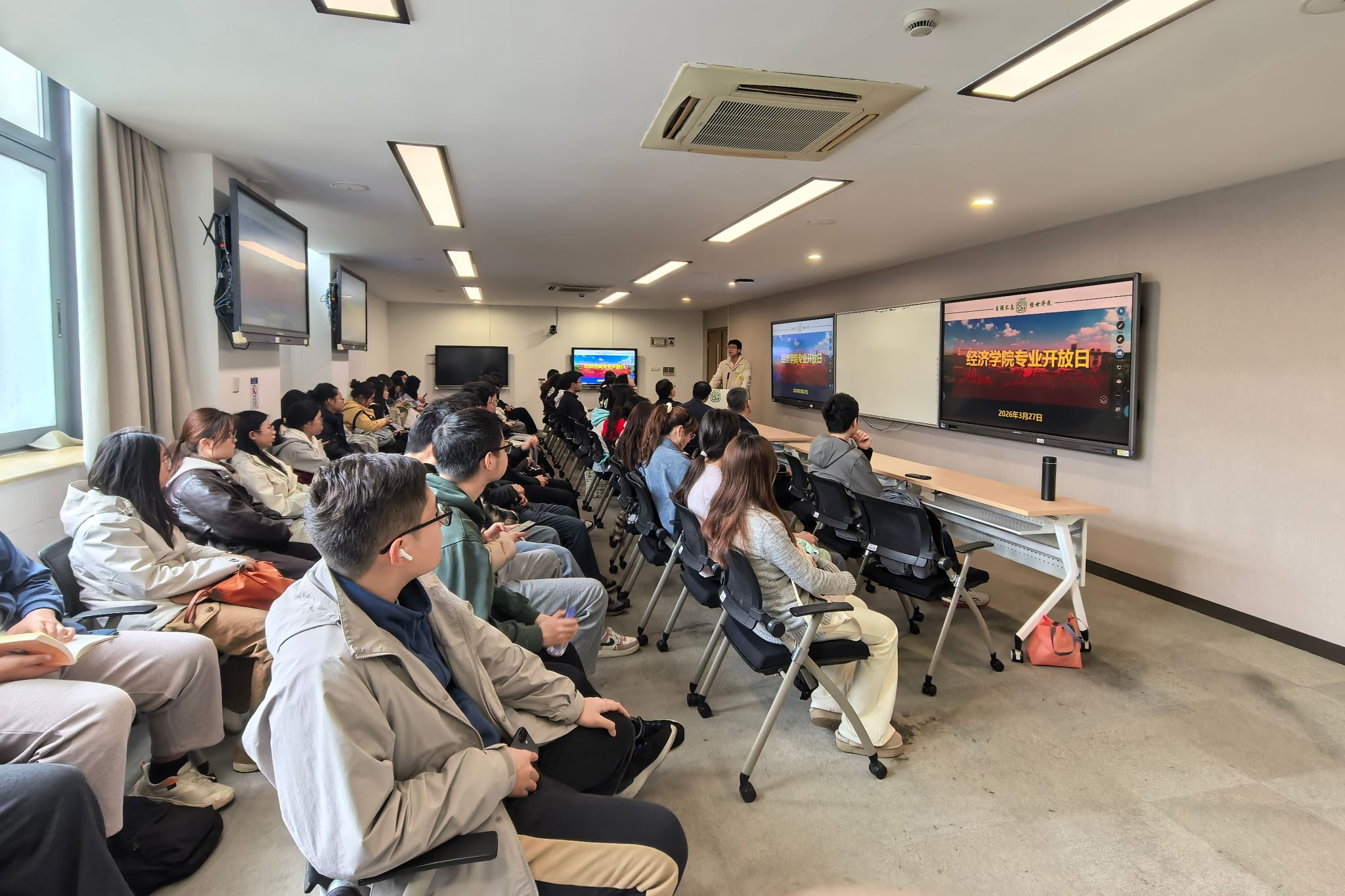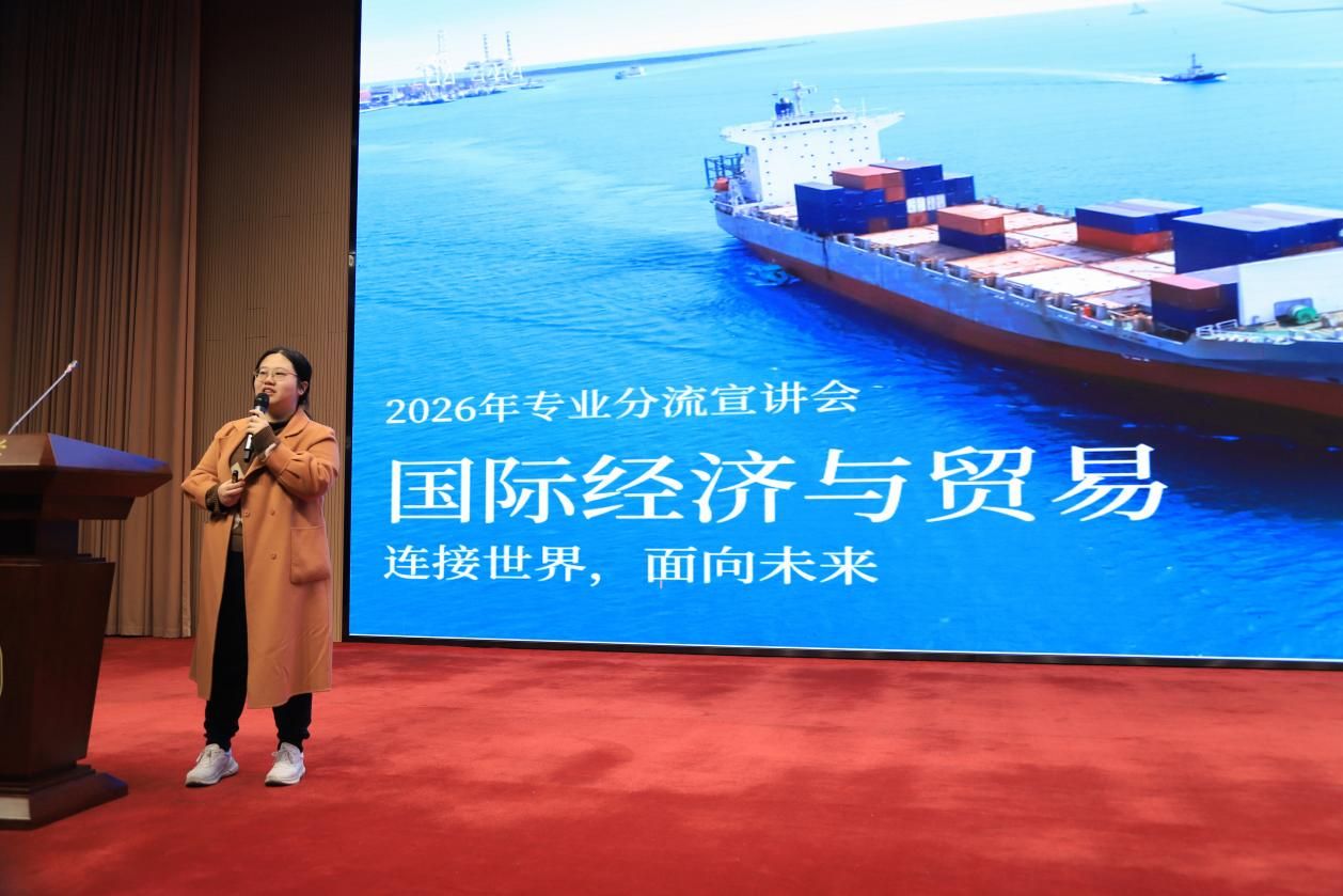 为帮助学生们深入了解太阳集团城娱8722本科专业的培养方向和培养特色,科学做好专业分流选择,太阳集团城娱8722于3月20日至3月27日举办了专业宣讲会和专业开放日活动。 3月20日15:00,经管大类专业宣讲会太阳集团城娱8722专场在宝山校区图书馆报告厅举行,太阳集团城娱8722党委书记尹应凯,党委副书记、副院长冯玉鑫,副院长刘康兵,金融系专业教师朱欢,经济系专业教师司春晓、郁杨成,经管大类辅导员刘世慧、孙冰、崔雨萱和2025级经管大类全体学生参加,活动由冯玉鑫主持。
