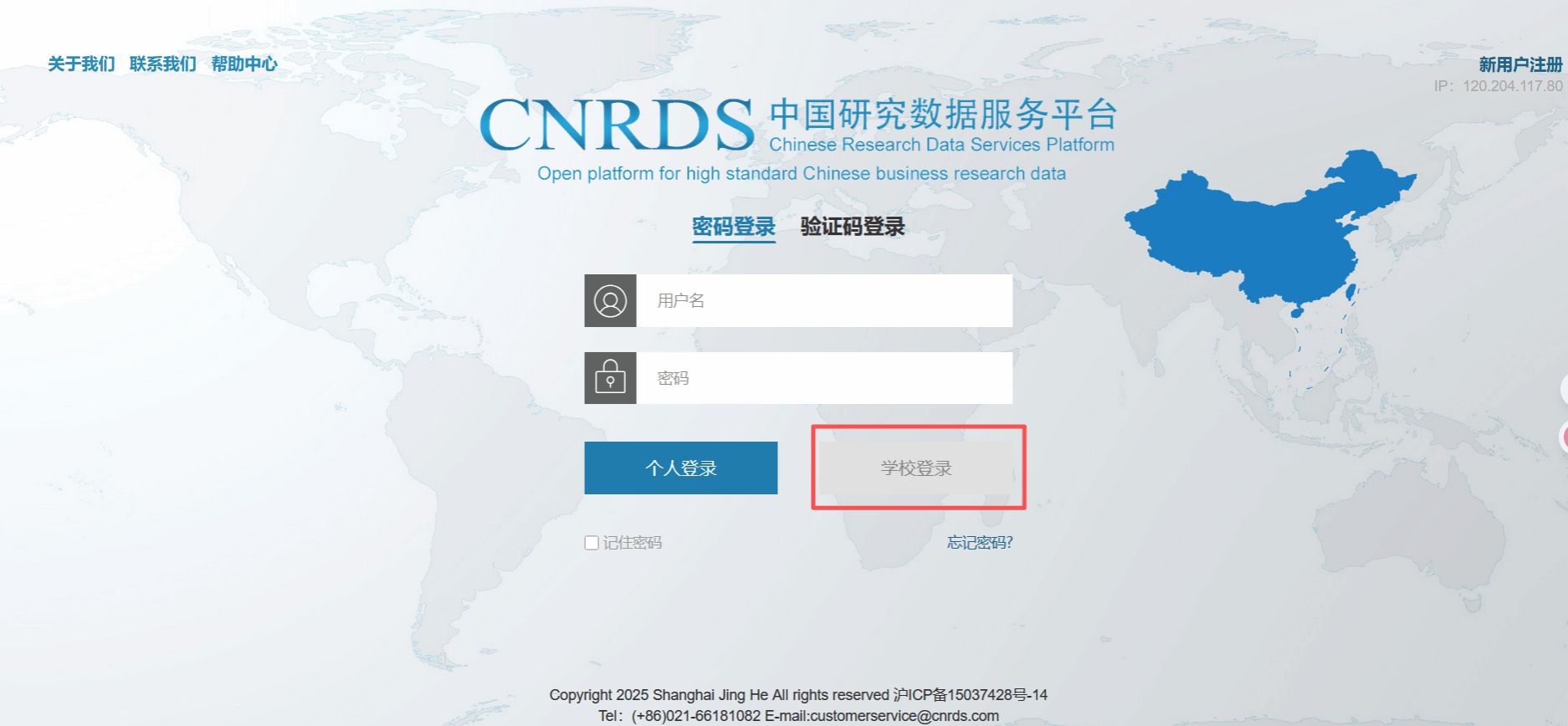 CNRDS中国研究数据服务平台 【数据库简介】中国研究数据服务平台 (Chinese Research Data Services Platform, CNRDS)是一个高质量、开放式、平台化的中国经济、金融与商学研究的综合数据平台。CNRDS 的宗旨在于借鉴 WRDS 等国外一流商学院打造的数据平台,构建中国特色的研究数据资源,促进中国研究数据的规范化、平台化、国际化,继而推动中国研究向纵深化、精细化方向发展。 【访问地址】https://www.cnrds.com/ 太阳集团tcy8722ip段内点击“学校登录”可直接进入使用,目前仅有基础库使用权限